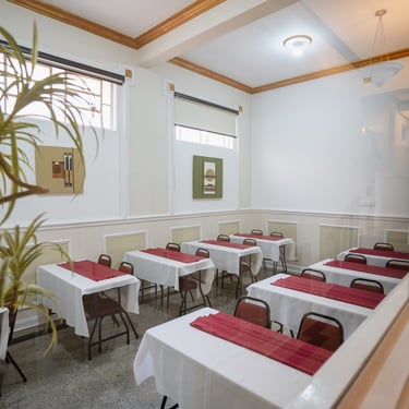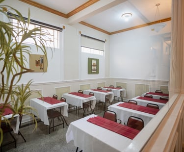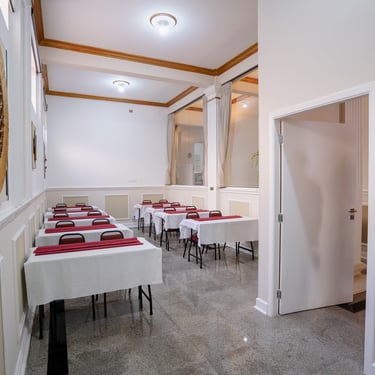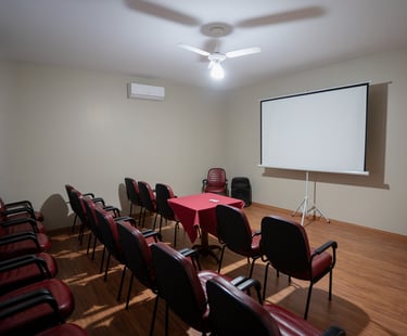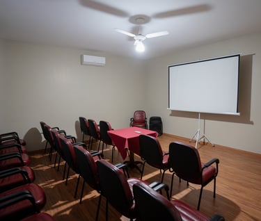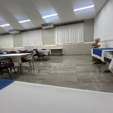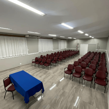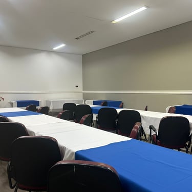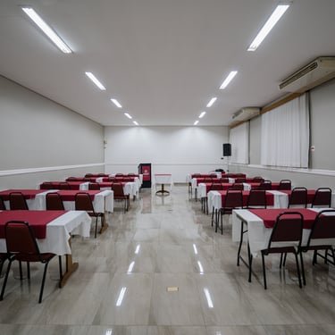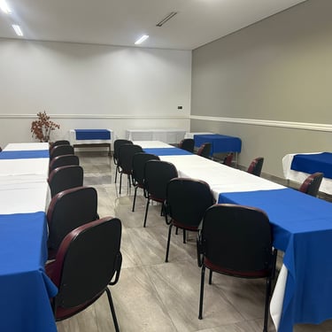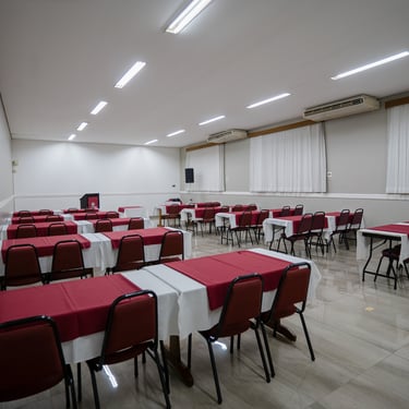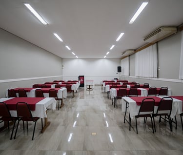 Nossas salas de eventos foram projetadas para se adaptar a qualquer tipo de ocasião. Com capacidade para até 100 pessoas e equipadas com ar condicionado, as salas grandes oferecem conforto e flexibilidade para grandes eventos.