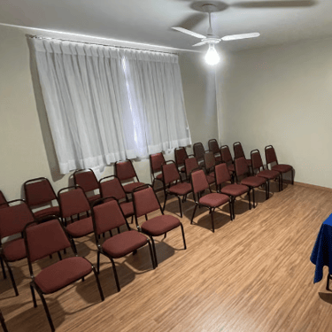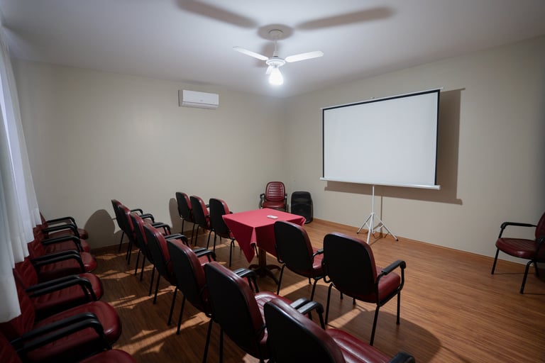 A Sala Rubi comporta 30 pessoas sentadas, sendo ideal para reuniões e eventos de médio porte.