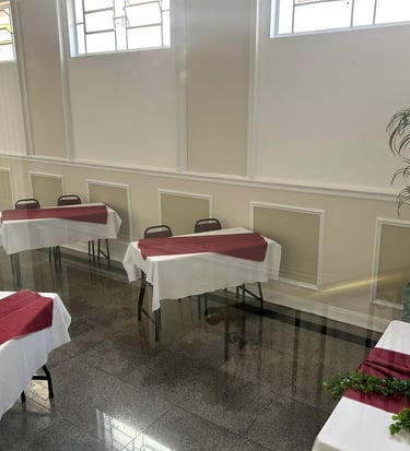 Nossas salas de eventos foram projetadas para se adaptar a qualquer tipo de ocasião. Com capacidade para até 100 pessoas e equipadas com ar condicionado, as salas grandes oferecem conforto e flexibilidade para grandes eventos.